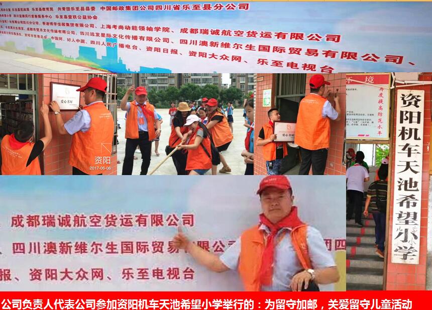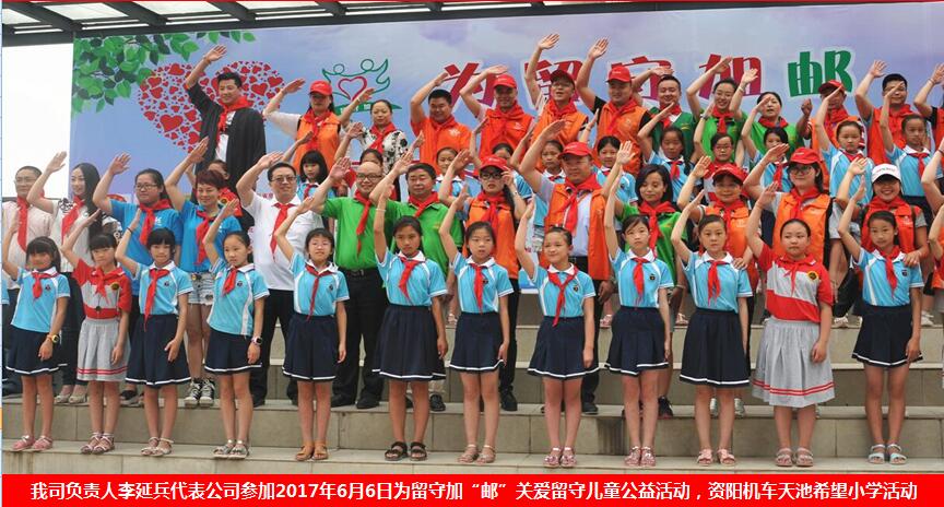 2017年6月6日根據四川益路同行理事會安排,十六位志愿者成都出發;慈善公益報執行總經理及六位益路志愿者,溫江出發,前往樂至縣“資陽機車天池希望小學”按計劃開展了“為留守加郵”關愛留守兒童大型公益活動。