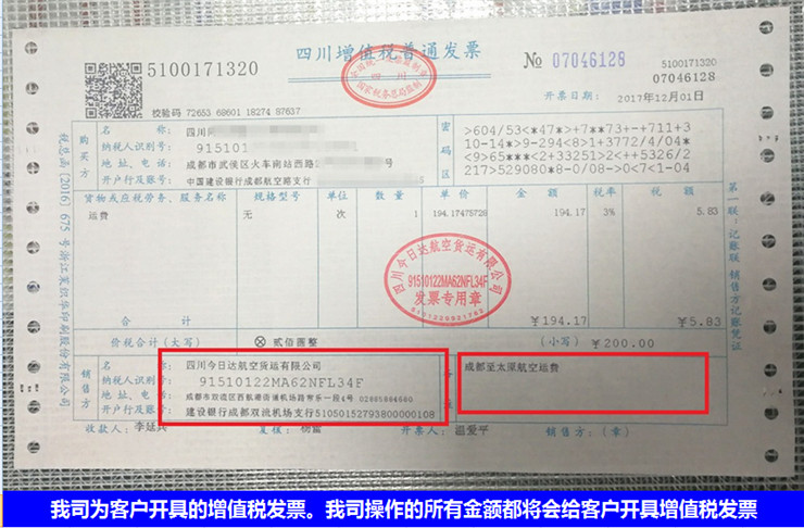 注釋:所有經我司:成都今日達航空快遞有限公司